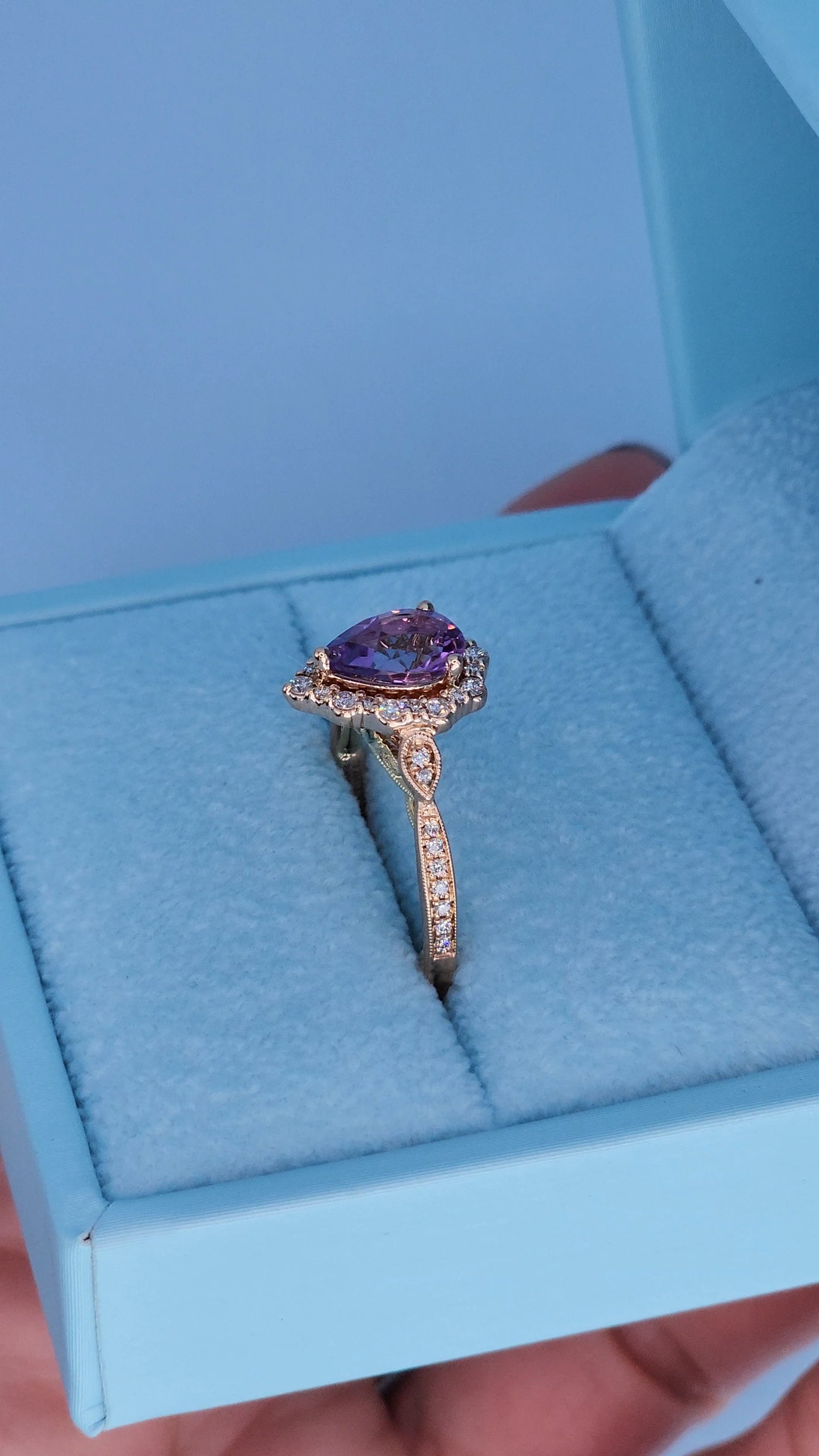 Center stone: Pear-shaped amethyst